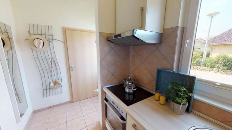 Das Feriendorf Südstrand Haus 01 bietet eine komfortable Unterkunft mit einer gut ausgestatteten Küche, die einen Geschirrspüler und einen Backofen umfasst. Der Wohnbereich verfügt über einen Fernseher und einen DVD-Player für Unterhaltungsmöglichkeiten. Das eigene Badezimmer ist mit einer Dusche ausgestattet. Das Haus bietet auch eine Veranda, auf der Sie die frische Luft und die schöne Umgebung genießen können.