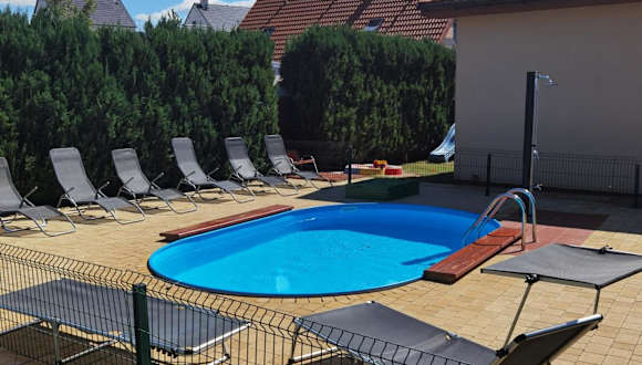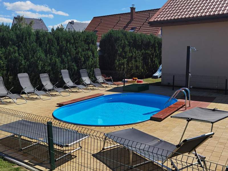 Die Unterkunft Ferienhäuser mit Pool befindet sich in Rewal, einem Ort in der Region Westpommern, in der Nähe des Strandes von Rewal, der nur 1,2 km entfernt ist. Sehenswürdigkeiten wie das Rathaus und der Bahnhof von Kolberg sind in 48 km und 49 km Entfernung erreichbar.