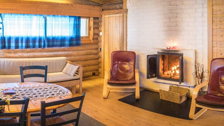 Die gemütlichen Chalets im Ukonjärven Holiday Village verfügen über einen eigenen Kamin und ein eigenes Badezimmer mit Sauna und Dusche. Der offene Schnitt des Küchen- und Wohnbereichs bietet ausreichend Platz und ist mit allen notwendigen Annehmlichkeiten wie Herd, Kühlschrank und Kaffeemaschine ausgestattet. Die Zimmer sind mit Holzböden ausgestattet und bieten ein eigenes Badezimmer mit Dusche.