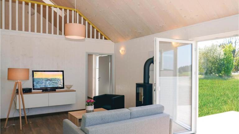 Das Ferienhaus umfasst drei Schlafzimmer, ein Wohnzimmer und eine voll ausgestattete Küche mit Kühlschrank und Kaffeemaschine. Ein Badezimmer mit Dusche und ein Fernseher sind ebenfalls vorhanden. Die Unterkunft bietet zudem eine Sonnenterrasse und außerhalb Gartenmöbel.