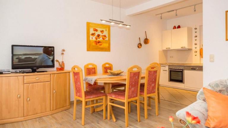 Die Ferienwohnung umfasst drei Schlafzimmer, ein Wohnzimmer mit Flachbild-TV sowie eine gut ausgestattete Küchenzeile, die mit einem Kühlschrank und einem Geschirrspüler ausgestattet ist. Es stehen zwei Badezimmer mit Dusche zur Verfügung. Handtücher und Bettwäsche können gegen Aufpreis bereitgestellt werden.