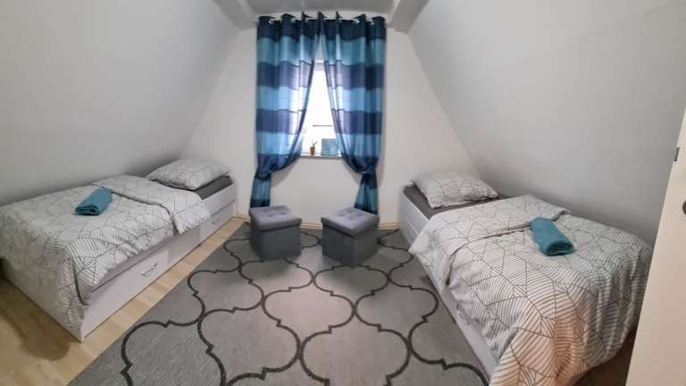 Das Ferienhaus verfügt über zwei Schlafzimmer und ein Wohnzimmer. Es ist mit einer voll ausgestatteten Küche ausgestattet, die einen Kühlschrank und eine Kaffeemaschine umfasst. Darüber hinaus steht ein Badezimmer mit Dusche und Haartrockner zur Verfügung. Handtücher und Bettwäsche werden bereitgestellt.