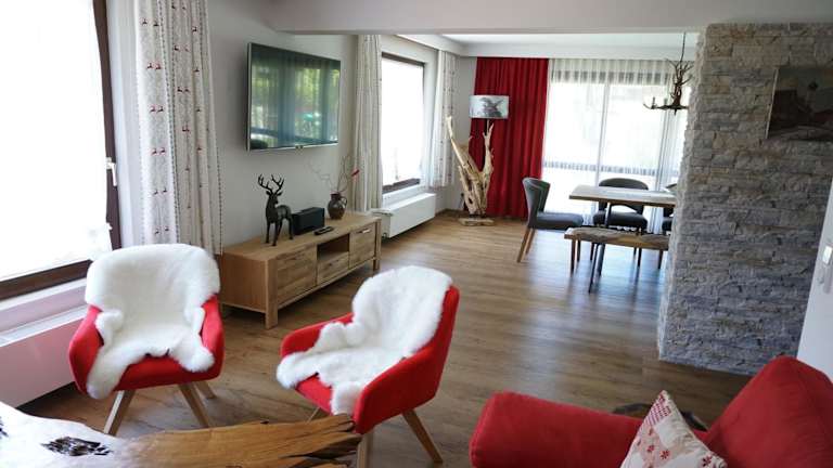 Das Ferienhaus Alpenperle bietet Platz für bis zu 9 Personen und verfügt über 3 Doppelzimmer, 1 Zweibettzimmer und 1 Einzelzimmer. Jedes Zimmer ist liebevoll eingerichtet und mit einem TV ausgestattet. Ein Highlight ist das Zimmer mit der Infrarotsauna, in der Sie sich nach einem aktiven Tag entspannen können. Im Erdgeschoss des Hauses befindet sich ein geräumiges Wohnzimmer mit einem gemütlichen Kamin, einem großen Esstisch und einem Sofa im alpinen Stil. Die voll ausgestattete Küche bietet alles, was Sie für die Zubereitung Ihrer Mahlzeiten benötigen. Kostenloses WLAN ist im gesamten Haus verfügbar.