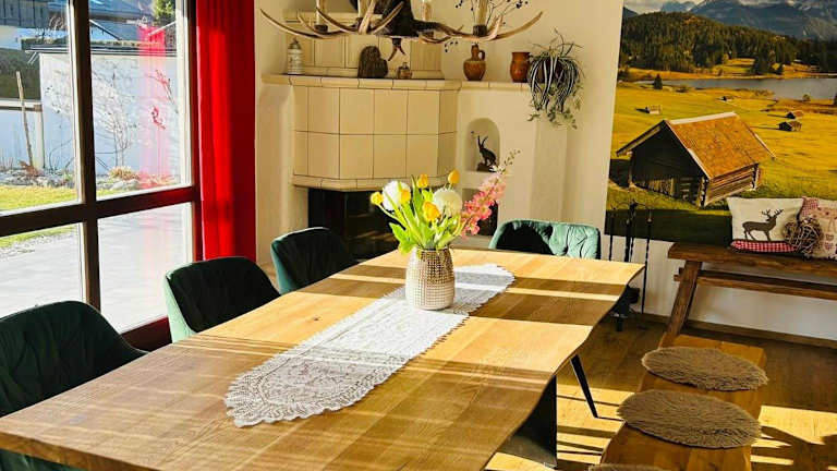 Das Ferienhaus Alpenperle verfügt über eine voll ausgestattete Küche, in der Sie Ihre eigenen Mahlzeiten zubereiten können. Alternativ können Sie auch in den nahegelegenen Restaurants traditionelle bayerische Küche genießen. Die Mitarbeiter des Ferienhauses geben Ihnen gerne Empfehlungen für Restaurants in der Umgebung.