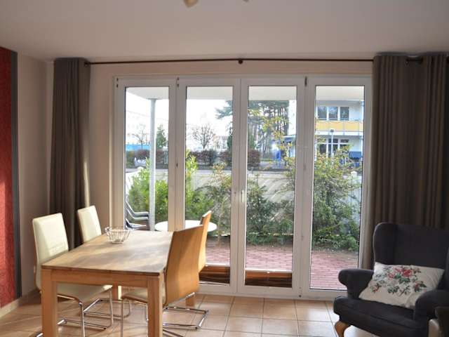 Das Ferienhaus am Maiglöchchenberg 5 befindet sich im Ostseebad Karlshagen, nur 600 m vom Strand entfernt. Die Umgebung bietet zahlreiche Möglichkeiten zum Wandern und Fahrradfahren. In der Nähe liegen beliebte Orte wie Swinemünde (36 km) und Binz (35 km). Der Flughafen Heringsdorf ist 34 km entfernt.