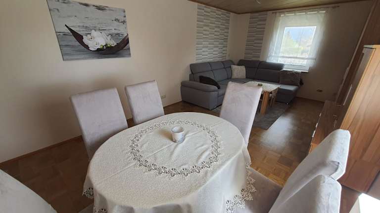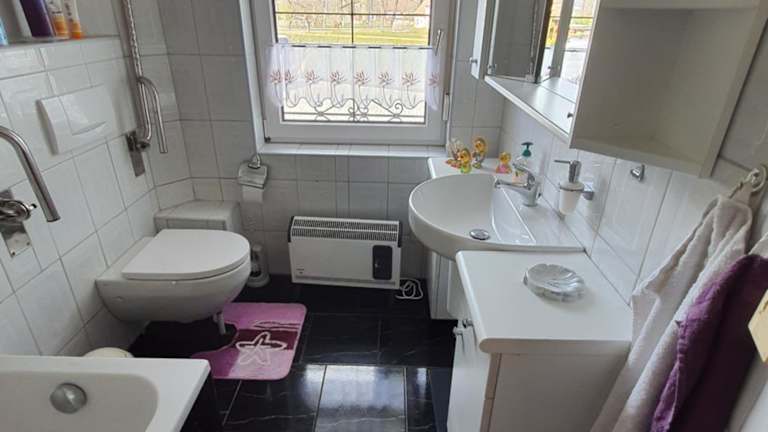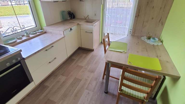 Das Apartment im Ferienhaus Am Pilgerweg verfügt über 2 Schlafzimmer, ein gemütliches Wohnzimmer und eine gut ausgestattete Küche. Es gibt auch 2 Badezimmer mit Dusche und Badewanne. Handtücher und Bettwäsche werden gestellt, so dass Sie sich wie zu Hause fühlen können. Von der Terrasse aus haben Sie einen schönen Blick auf den Garten.