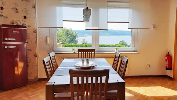 Das Ferienhaus am Seeblick bietet eine Vielzahl an Annehmlichkeiten, darunter eine Terrasse, eine Gemeinschaftsküche und Zugang zu kostenlosen Fahrrädern. Zu den Einrichtungen zählen ein Billardtisch, Dart, ein Garten und ein Wellnessbereich mit einem Whirlpool.