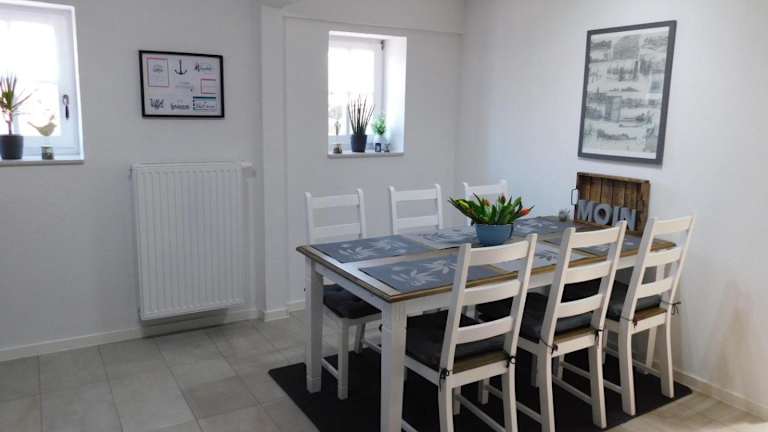 Das Ferienhaus verfügt über eine komplett ausgestattete Küche mit Kühlschrank, Geschirrspüler und Ofen. Zudem umfasst es ein Wohnzimmer, einen Essbereich, 2 Schlafzimmer sowie ein Badezimmer mit Dusche. Handtücher und Bettwäsche sind im Angebot enthalten.