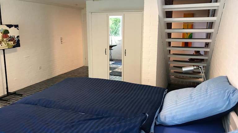 Das Ferienhaus Atelier am Südhang befindet sich in der malerischen Stadt Worpswede, nur 30 km von der Bürgerweide entfernt. Die Umgebung bietet zahlreiche Möglichkeiten für Aktivitäten wie Wandern, Kanufahren und Radfahren. Die Lage ist ideal, um die schöne Natur und die kulturellen Sehenswürdigkeiten der Region zu erkunden. Der Bremer Hauptbahnhof ist ebenfalls leicht zu erreichen und der Flughafen Bremen liegt nur 35 km entfernt.