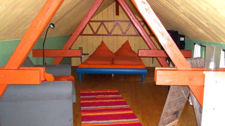 Bei dem Haus handelt es sich um ein historisches Fachwerkgebäude, mit zwei Etagen. In der unteren Etage befindet sich eine Eßecke mit offener Küche, so wie das Badezimmer. Die offene obere Etage erreicht man über eine schmale, etwas steile Treppe. Dort findet man ein Sofa, so wie ein konfortables Bett.