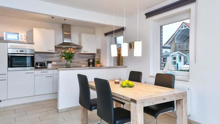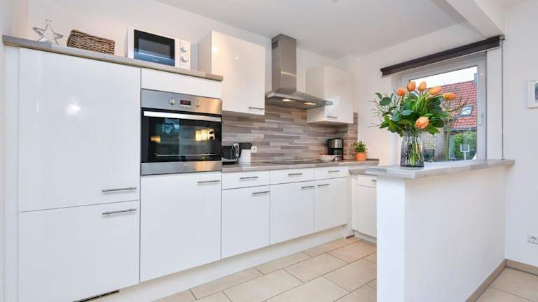 Das Ferienhaus umfasst zwei Schlafzimmer und ist mit einem TV ausgestattet. Die voll ausgestattete Küche bietet einen Kühlschrank, Geschirrspüler, Waschmaschine, Ofen und Mikrowelle, was den Gästen eine selbstständige Versorgung ermöglicht.