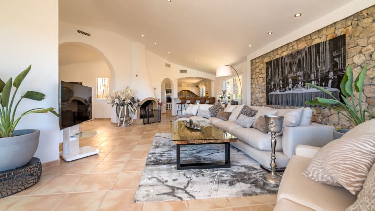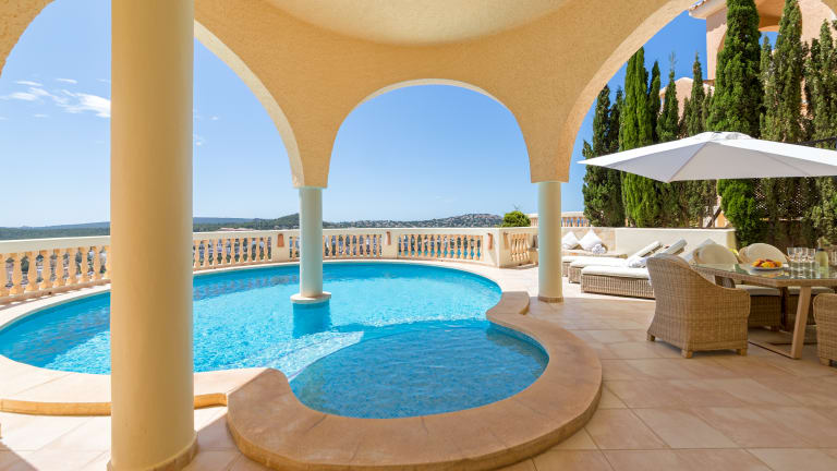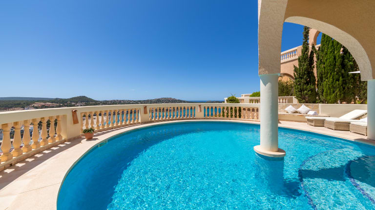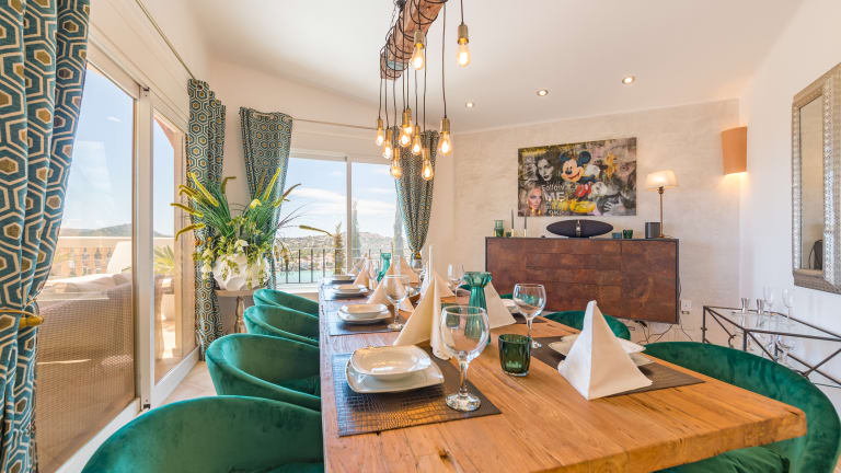 Luxuriös ausgestattetes komplett neu renoviertes Ferienhaus mit Pool, nur 5 Gehminuten vom Zentrum Santa Ponca entfernt. Meerblick auf die Bucht von Santa Ponca. Sie finden hier Ruhe und Privatsphäre mit einem gigantischen Blick über das Zentrum von Santa Ponca und können dennoch in 5-10 GehminutenRestaurants, Bars, Shops und Strand erreichen. Eine Sauna und Barbeque Aussenküche runden den Luxus im Haus ab.