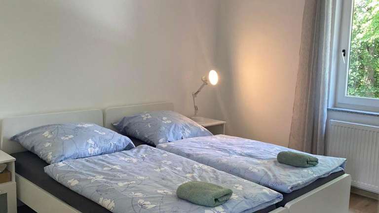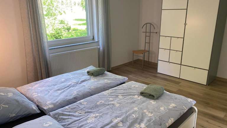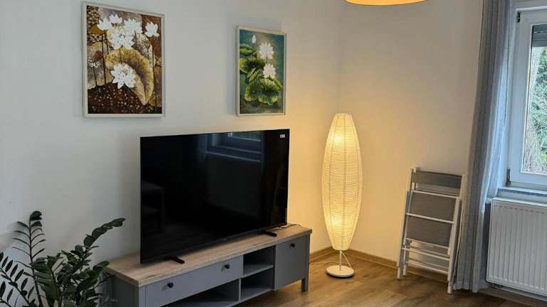 Die Ferienwohnung verfügt über zwei Schlafzimmer und ein Wohnzimmer, das mit einem Flachbild-TV ausgestattet ist. Eine voll ausgestattete Küche sowie ein Badezimmer sind ebenfalls vorhanden, was für einen angenehmen Aufenthalt sorgt.