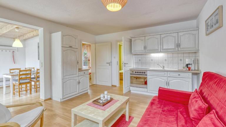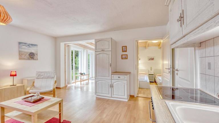Das Ferienhaus verfügt über 2 Schlafzimmer sowie eine Küche, die mit einem Kühlschrank und einem Ofen ausgestattet ist.