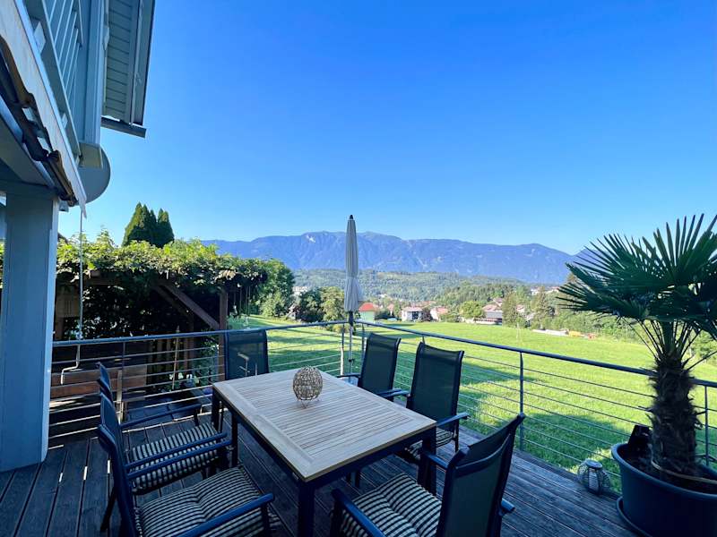 Das 2018 renovierte Ferienhaus bietet viel Licht, freien Blick in die Kärntner Bergwelt und mehrere Außenbereiche wie Balkon, Terrasse und Garten. Auf 138 m² Wohnfläche, verteilt auf zwei Etagen, stehen ein eingezäunter Garten (600 m²) sowie ruhige Rückzugsorte zur Verfügung. Erdgeschoss: Diele mit Garderobe und Treppe, separates WC, Badezimmer mit Badewanne, Dusche, WC und Fenster, voll ausgestattete Küche mit großem Essbereich und direktem Terrassenzugang, Wohnbereich mit TV (SAT) und Leseecke. Alle Fenster und Türen im Erdgeschoss sind mit Insektenschutzgittern ausgestattet. Obergeschoss: Drei Schlafzimmer mit Doppelbetten, Balkonzugang und Verdunkelungsmöglichkeiten (Jalousien/Rollläden), teilweise mit Dachflächenfenster, sowie ein zusätzliches WC mit Waschbecken. Außenbereich: Terrasse mit Esstisch, Stühlen, Sonnenschirm und Markise, Weinlaube, überdachte Holzhütte, Sonnenliegen, eingezäunter Garten mit Bäumen als Schattenspender. Zwei kostenlose Stellplätze am Grundstück, eine abschließbare Garage auf Anfrage zubuchbar.