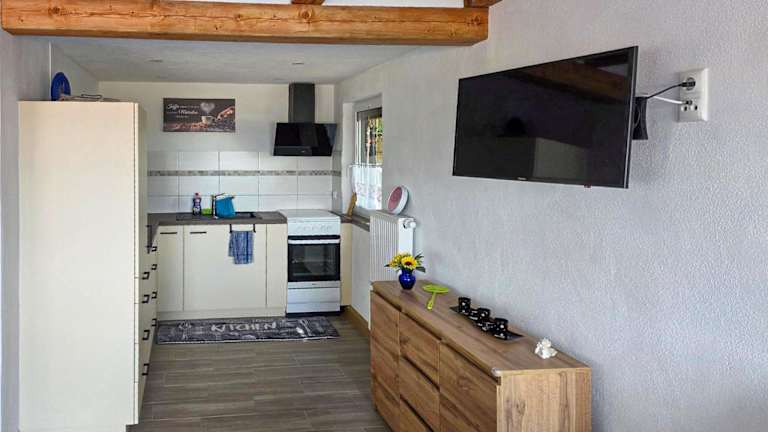 Das Ferienhaus umfässt zwei Schlafzimmer, ein Wohnzimmer, eine voll ausgestattete Küche mit Kühlschrank und Kaffeemaschine sowie ein Badezimmer mit Dusche. Zur technischen Ausstattung gehört ein Flachbild-TV.