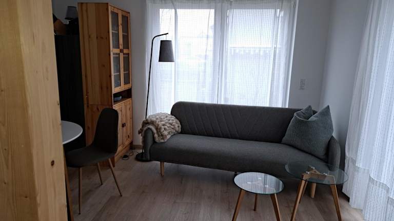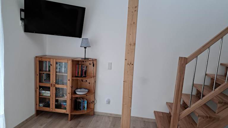 Das Ferienhaus verfügt über ein Schlafzimmer und eine Küchenzeile, die mit einem Kühlschrank und einem Geschirrspüler ausgestattet ist. Ein Flachbild-TV und ein Sitzbereich stehen zur Verfügung. Das Badezimmer ist mit einer Dusche ausgestattet. Handtücher und Bettwäsche werden bereitgestellt.