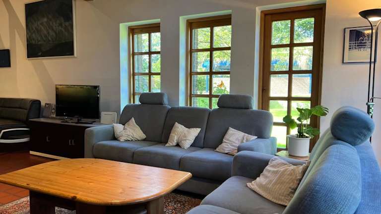 Die Zimmer umfassen 4 Schlafzimmer, ein Badezimmer, Bettwäsche und Handtücher. Die voll ausgestattete Küche ist ideal für die Selbstverpflegung. Eine Terrasse mit Gartenblick und Gartenmöbel stehen den Gästen ebenfalls zur Verfügung.