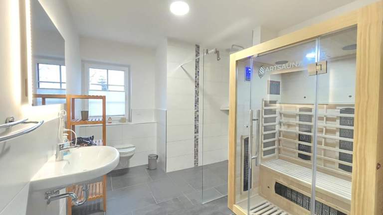 Das Ferienhaus bietet Platz in drei Schlafzimmern und verfügt über eine komplett ausgestattete Küche mit Kühlschrank und Geschirrspüler. Zudem sind zwei Badezimmer vorhanden, die jeweils mit einer Dusche und kostenlosen Pflegeprodukten ausgestattet sind. Eine Waschmaschine sowie ein Fernseher gehören ebenfalls zur Ausstattung. In den Zimmern ist Heizung vorhanden, und die Unterkunft ist rollstuhlgerecht gestaltet.