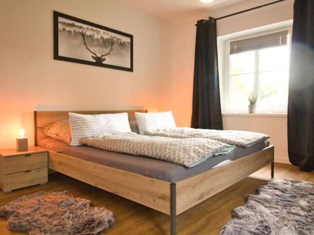 Die Unterkunft Ferienhaus Haas - Am Heidschnuckenweg befindet sich in Faßberg und bietet eine ruhige Lage in der Natur. Am Heidschnuckenweg gelegen, ermöglicht sie einen Blick auf die umliegende Gartenlandschaft. Die Entfernung zu verschiedenen Attraktionen beträgt 30 km zum Heide Park Soltau, 36 km zum Kloster Ebstorf und 39 km zum Bomann-Museum. Das Deutsche Panzermuseum ist 14 km weit entfernt, während der Lopausee in 40 km Entfernung liegt. Der nächstgelegene Flughafen ist Hannover-Langenhagen, 90 km von der Unterkunft entfernt.
