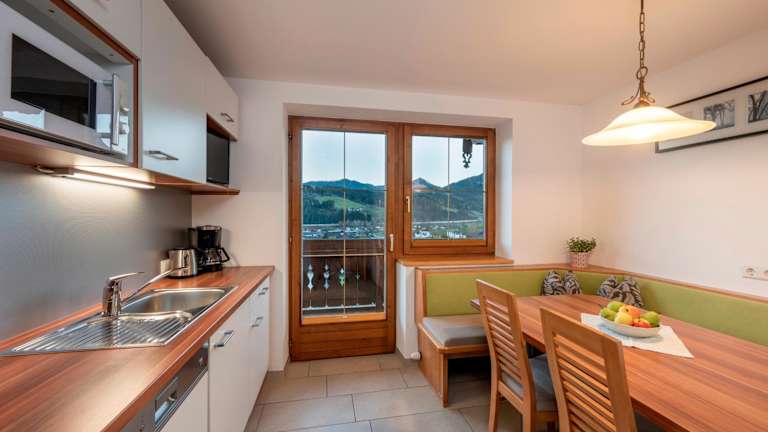 Die Unterkunft verfügt über einen Balkon mit Bergblick, einen Sitzbereich sowie einen Kabel Flachbild-TV. Zudem gibt es eine voll ausgestattete Küche mit einem Kühlschrank, Geschirrspüler, Ofen, Mikrowelle, Herdplatte, Kaffeemaschine und Wasserkocher. Ein eigenes Badezimmer mit Dusche und Haartrockner ist ebenfalls vorhanden.