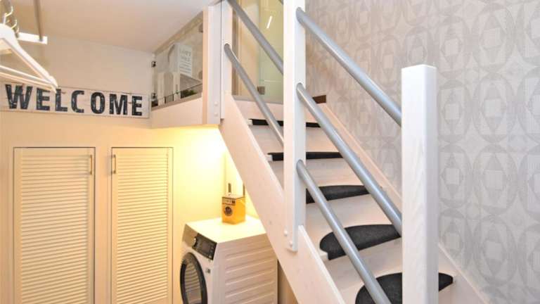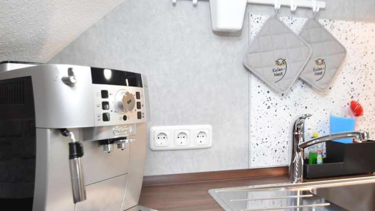 In der Unterkunft steht eine voll ausgestattete Küche zur Verfügung, die mit einem Kühlschrank, Geschirrspüler und Ofen ausgestattet ist. Es wird eine Essbereich im Wohnzimmer angeboten.