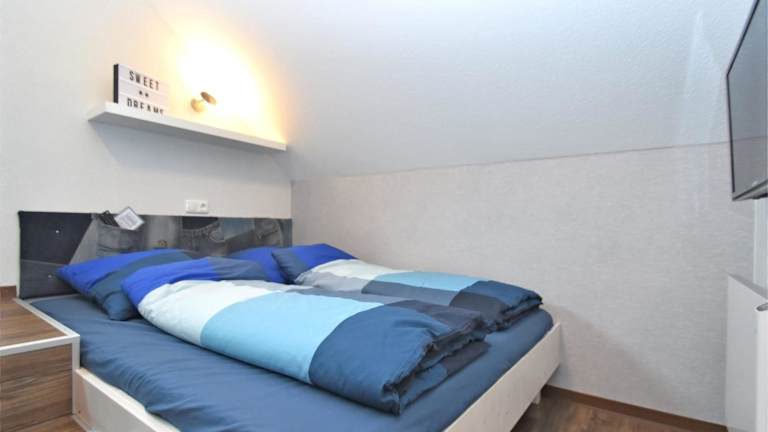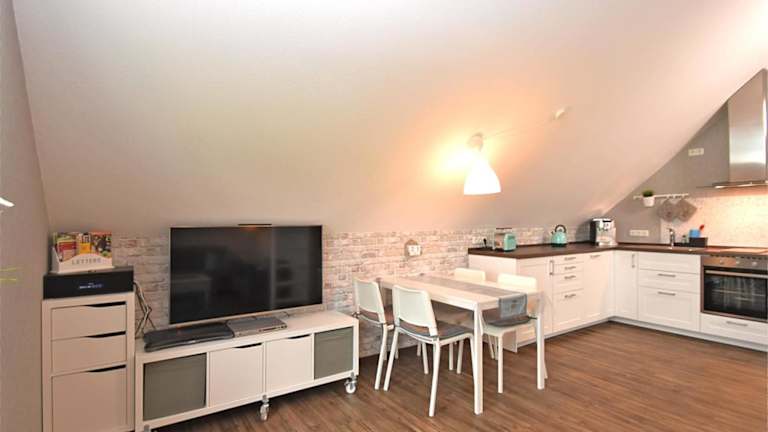 Die Ferienwohnung verfügt über ein Schlafzimmer, ein Badezimmer mit Dusche, ein Wohnzimmer mit einem Essbereich sowie eine Küche. Handtücher und Bettwäsche sind bereitgestellt. Eine DVD-Player ist ebenfalls vorhanden.