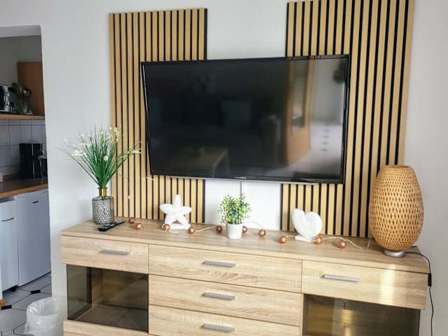 Die Ferienwohnung umfasst ein Schlafzimmer, ein Wohnzimmer und eine gut ausgestattete Küche mit einem Kühlschrank. Des Weiteren stehen eine Terrasse sowie Handtücher und Bettwäsche zur Verfügung. Die Unterkunft bietet WLAN und einen Flachbild-TV. Haustiere sind nicht gestattet, es kann jedoch ein Aufpreis in Höhe von 15 EUR pro Haustier und pro Aufenthalt berechnet werden. Das Mindestalter für den Check-in beträgt 18 Jahre.
