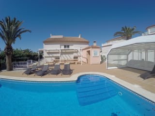 Dieses Haus ist perfekt für 2-3 Familien oder eine Gruppe von 12 Personen. Nur 100m von der Strand. Das Haus verfügt über 4 Doppelzimmer und 1 Vierbettzimmer. Sie haben 3 Badezimmer mit Dusche im Haus und ein weiteres Badezimmer mit Dusche außerhalb, neben dem Pool. Das Haus hat drei Etagen, beginnend mit dem Erdgeschoss, wo sich das Wohnzimmer, ein Badezimmer mit Dusche und eine große amerikanische Küche befinden. Im ersten Stock befinden sich zwei Badezimmer mit Dusche und zwei Doppelzimmer. Auf der dritten Etage haben wir 3 Schlafzimmer und eine Tür mit Zugang zum Solarium, wo wir die Sonnenbräune und teilweise Blick auf das Meer genießen können. Draußen können Sie den Tisch und die Grillarbeiten genießen, direkt vor dem Pool (dieser Bereich ist zur Sicherheit für kleine Kinder eingezäunt). Rund um das Haus finden wir etwas Gras, Kies, einige Rosen, Olivenbäume und einen Zitronenbaum. Schließlich die Garage, ideal um alles zu verstauen und mit direktem Zugang zum Inneren des Hauses.