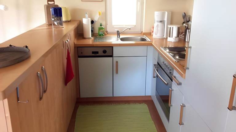 Das Ferienhaus verfügt über ein Schlafzimmer, ein Wohnzimmer sowie eine voll ausgestattete Küche. Die Küche ist mit einem Kühlschrank und einer Kaffeemaschine eingerichtet. Zudem gibt es ein Badezimmer mit Dusche und kostenlosen Pflegeprodukten. Handtücher und Bettwäsche werden zur Verfügung gestellt.
