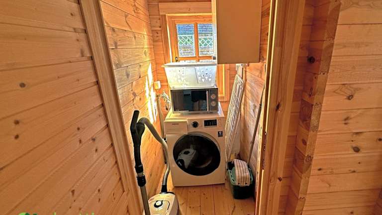 Das Ferienhaus verfügt über zwei Schlafzimmer, eine Küche mit Kühlschrank und Geschirrspüler sowie ein Badezimmer mit Dusche, Haartrockner und Waschmaschine. Handtücher und Bettwäsche sind ebenfalls vorhanden.