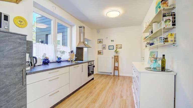 Das Ferienhaus verfügt über ein Schlafzimmer, einen Flachbild-TV sowie eine vollständig ausgestattete Küche. Handtücher und Bettwäsche werden bereitgestellt.