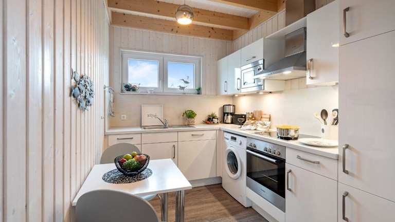 Das Ferienhaus verfügt über zwei Schlafzimmer, eine voll ausgestattete Küche mit Kühlschrank und Geschirrspüler sowie zwei Badezimmer mit Dusche, Haartrockner und Waschmaschine. Zu den Annehmlichkeiten gehören ein TV und ein CD-Player. Die Räumlichkeiten sind Nichtraucherzonen.