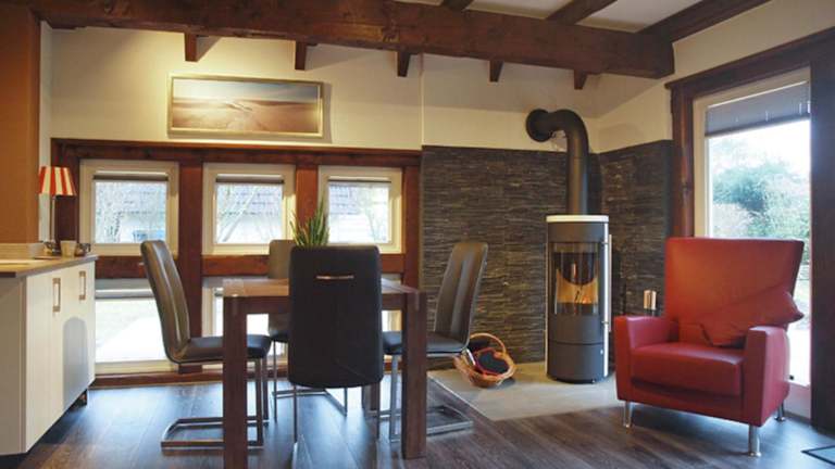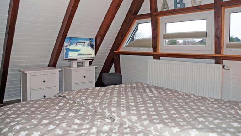 Das Ferienhaus ist mit zwei Schlafzimmern ausgestattet und verfügt über einen Fernseher mit Satellitenkanälen. Die voll ausgestattete Küche umfasst einen Kühlschrank, einen Geschirrspüler, eine Waschmaschine sowie einen Ofen, um den Gästen einen komfortablen Aufenthalt zu ermöglichen.