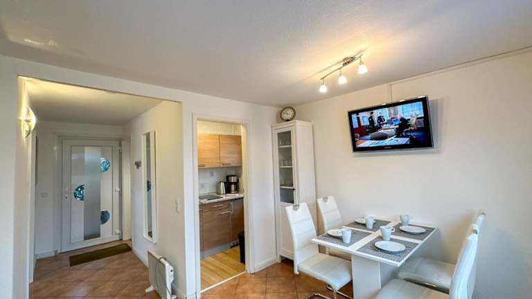 Das Ferienhaus Seepferdchen Duhnen befindet sich in Cuxhaven, nur 1 km vom Duhnen Strand entfernt. In der näheren Umgebung sind die Alte Liebe (7,9 km) sowie die Stadthalle Bremerhaven (47 km) und der Hauptbahnhof Bremerhaven (48 km) zu finden. Der Hauptbahnhof Cuxhaven liegt 7 km entfernt, während der Leuchtturm 'Dicke Berta' etwa 16 km entfernt ist. Der Flughafen Bremen ist der nächstgelegene Flughafen und liegt 108 km von der Unterkunft entfernt.