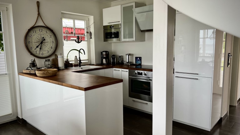 Exklusiv, edel und elegant, in der ruhigen Straße „Am Albatrosplatz 7“ im Ostseeresort Olpenitz, präsentiert sich das außergewöhnliche, alleinstehende Traumferienhaus „Sliminde by Seeblick Ferien ORO". Es ist einzigartig vom Baustil und überzeugt mit traumhaften Panorama-Ansichten auf Ostseefjord Schlei. Wer nach Erholung im gehobenen Stil strebt, wird hier sein neues Lieblings-Feriendomizil finden. Hier heißt es: Ankommen und Wohlfühlen. Im Fokus steht der perfekt umgesetzte lichtdurchflutete Wohn- und Essbereich mit bodentiefen Fenstern, einer gemütlicher Echtleder Sitzlandschaft, welche zusätzlich zwei Schlafplätze bietet und dem großen Esstisch, dem Mittelpunkt der Wohnung. Die geschmackvolle Einrichtung, verleihen dem Herz der Wohnung Charme und außergewöhnlichen Wohnkomfort, wobei die Fußbodenheizung das I-Tüpfelchen aufsetzt. Der holzbefeuerte Kaminofen, mit seinem prasselnden Feuer, sorgt in diesem gemütlichen Ambiente selbst bei nordischen Schietwettertagen, für heimelige Kuschelstunden. Der 55 Zoll Smart TV mit HD+ und das Internet Radio sorgen ebenfalls für Indoor-Unterhaltung damit man den Bezug zur Realität in diesem Ambiente nicht ganz verliert. Die um das ganze Haus verlaufene Veranda bietet die Möglichkeit immer ein windgeschütztes Plätzchen zu finden und die Zeit am Meer zu genießen. Der im Anschluss an die Terrasse in Richtung Wasser umzäunte Garten mit kleinem Strandabschnitt ist das Highlight und definitiv einzigartig. Ein Strandkorb, Gartenmöbel und zwei Adirondack-Stühle mit Tisch und Fußteil stehen zur Verfügung. Der Blick fällt hier auf die atemberaubende Wasserkulisse der Schlei. Unvergessliche Sonnenuntergänge mit vorbeifahrenden Segelschiffen, Möwen in der Luft und die umgebende Ostseebrise ist ein Naturschauspiel, von dem man nicht müde wird, zuzuschauen. Das ist Urlaub mit „Seeblick Ferien ORO“ in diesem Traumhaus „Sliminde“. Sollten Sie das Los gezogen haben, Ihre Mannschaft zu verköstigen, ist das auf keinen Fall eine Niete. Die offen gestaltete Küche bietet an hochwertiger Technik und Ausstattung alles, was das Kochherz begehrt und lässt die vermeintliche Arbeit zur Freude werden. Bis ins kleinste Detail liebevoll eingerichtet. Es liegt sogar ein Kindergeschirr bereit. Die direkt an den Essbereich angrenzende Terrasse verbindet den Wohnbereich mit der Natur und verspricht gesellige Grillabende der besonderen Art mit dem Ofyr-Grill oder romantische Candle-Light Dinners bei traumhafter Kulisse und Ambiente Beleuchtung. Für zusätzlichen Komfort sorgt ein Gäste WC, sowie ein Hauswirtschaftsraum mit Waschmaschine und Kondensations-Trockner, welcher das Erdgeschoss komplettiert. Über eine imposante Wendeltreppe gelangt man in das Obergeschoss. Zwei großzügige Schlafzimmer mit hochwertigen Boxspringbetten für vier Personen, garantieren einen wunderbar entspannten Schlaf und schöne Träume. Doch möchte man eigentlich bei diesem Ausblick schlafen...? Das Beruhigende ist: man wacht mit demselben traumhaften Ausblick wieder auf. Jedes Schlafzimmer punktet insbesondere mit dem direkten Zugang zum Balkon und dem traumhaften Ausblick auf die Schlei, sowie einen kleinen Schreibtisch für diejenigen, die im Urlaub ein wenig Arbeiten müssen. High Speed WLAN über Glasfaser und ein 43 Zoll Smart TV in jedem Schlafzimmer, ist in diesem Ferienobjekt selbstverständlich. Das voll ausgestattete Badezimmer im Obergeschoss, mit bodengleicher Dusche, bietet maritime Wellness-Momente. In der separaten finnischen Sauna lässt es sich zu jeder Jahreszeit tiefenentspannen. Vor dem Haus stehen zwei eigene Parkplätze und ein abschließbarer Fahrradschuppen mit 220V Stromanschluß zur Verfügung. Abgerundet wird dies durch die Elektroladesäule (Wallbox 11Kw mit Typ2 Stecker) für das Elektroauto. Lassen Sie sich Ihre Backwaren jeden Morgen an Ihre Haustür liefern, das ist Urlaub mit Seeblick Ferien ORO. !****Strom- und Heizkosten (Gas) sind nicht im Reisepreis enthalten und werden separat nach Verbrauch abgerechnet. Im Traumferienhaus Sliminde ist maximal ein Hund gegen Gebühr erlaubt. Bettwäsche und Handtücher können in Form von Wäschepaketen (ca. 21,-€ pro Person) direkt bei der Agentur Seeblick Ferien ORO gebucht werden, Ihre Betten wären dann bei Anreise bereits bezogen****! Eine Kaution ist bei Anreise in Höhe von 300,-€ in BAR zu hinterlegen, diese wird sofort beim Check Out nach Abzug der Verbrauchskosten, zurückerstattet wenn keine Schäden festgestellt wurden. Das Ostseeresort Olpenitz befindet sich momentan noch in einem ständigen Wandel mit Bautätigkeit. Dies ist bei der Preisberechnung bereits berücksichtigt und stellt keinen Mangel dar.