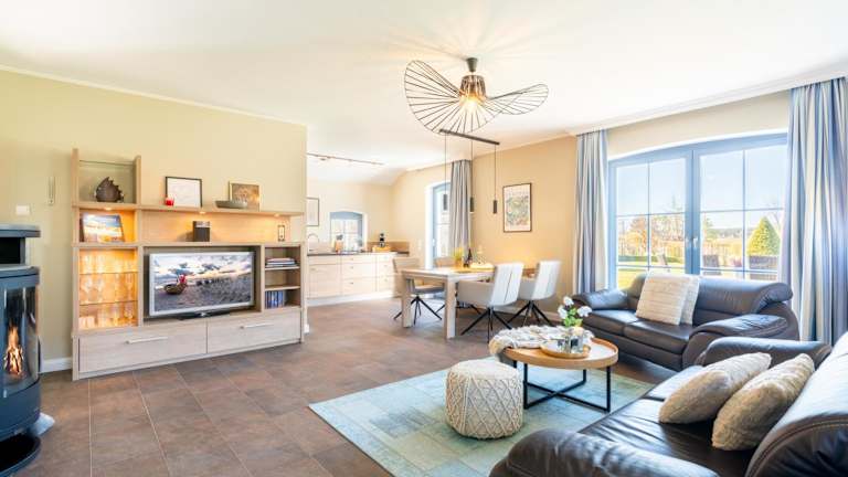 Die Ferienhäuser befinden sich nur 5 Gehminuten vom Sandstrand der Ostseeküste und etwa 200 m vom Kölpinsee entfernt. Supermärkte und eine Bäckerei sind ebenfalls in einem kurzen Fußweg erreichbar. Der Bahnhof Kölpinsee liegt nur 2 Gehminuten entfernt.