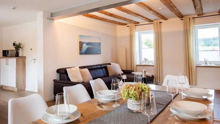 Das Ferienhaus Traumzeit verfügt über eine Gemeinschaftsküche, in der Sie Ihre eigenen Mahlzeiten zubereiten können. Alternativ können Sie auch den Grill nutzen, der Ihnen zur Verfügung steht. In der Umgebung finden Sie auch Restaurants und Cafés, in denen Sie regionale Spezialitäten und internationale Küche genießen können.