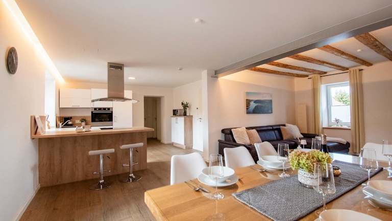 Das Ferienhaus Traumzeit verfügt über 2 Schlafzimmer und bietet Platz für bis zu 4 Personen. Das Haus ist geschmackvoll eingerichtet und verfügt über ein gemütliches Wohnzimmer mit einem Flachbild-Sat-TV. Die voll ausgestattete Küche bietet Ihnen die Möglichkeit, Ihre eigenen Mahlzeiten zuzubereiten. Das Ferienhaus verfügt außerdem über 2 Badezimmer mit Dusche und Badewanne. Handtücher und Bettwäsche werden gestellt, um Ihren Aufenthalt so angenehm wie möglich zu gestalten.