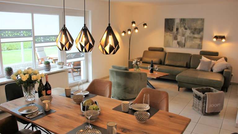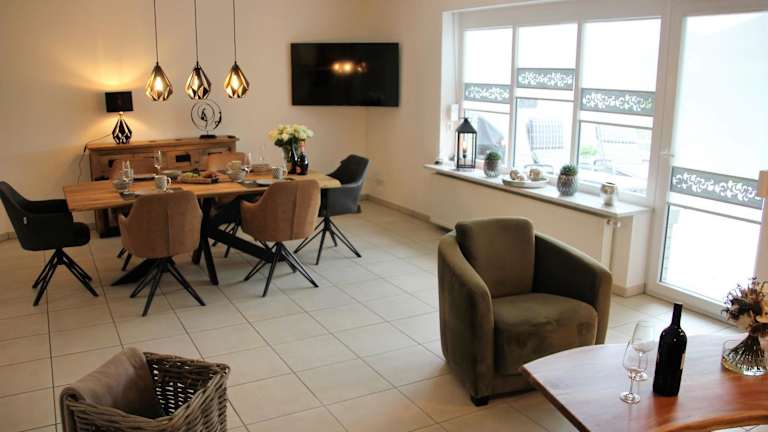 Im Ferienhaus Uggelharde steht eine voll ausgestattete Küche zur Verfügung, in der Gäste ihre eigenen Mahlzeiten zubereiten können. Alternativ können Restaurants in der Umgebung besucht werden, um lokale Spezialitäten zu genießen.