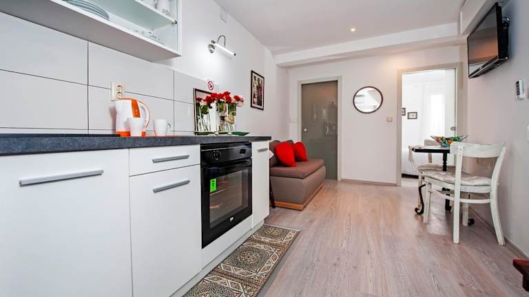 Das Ferienhaus Vesna befindet sich im Zentrum von Rovinj, 500 m vom Strand Baluota und 1,6 km vom Mulini Beach entfernt. In der Nähe befinden sich Sehenswürdigkeiten wie die Kirche der heiligen Euphemia, der Balbi Arch und der Yachthafen ACI Rovinj. Der Flughafen Pula ist 38 km entfernt.