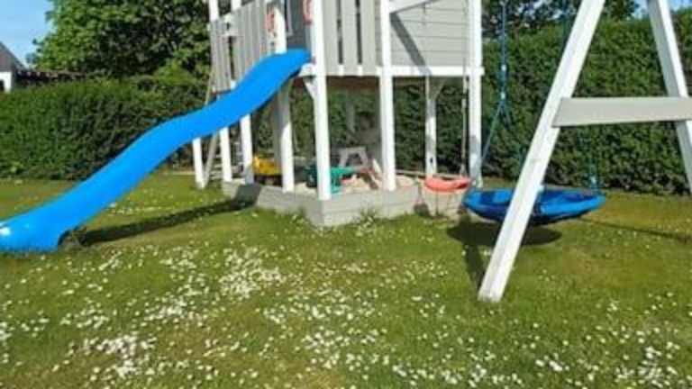 Das Ferienhaus bietet drei Schlafzimmer, eine Küche ausgestattet mit Kühlschrank und Geschirrspüler, einen Flachbild-TV, einen Sitzbereich sowie zwei Badezimmer mit Dusche. Handtücher und Bettwäsche werden bereitgestellt.
