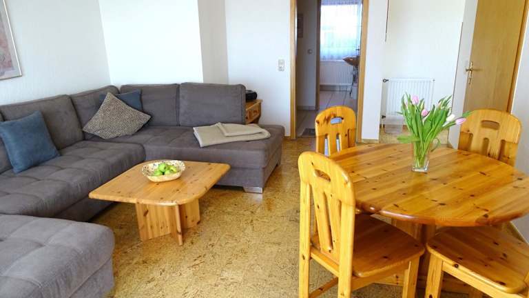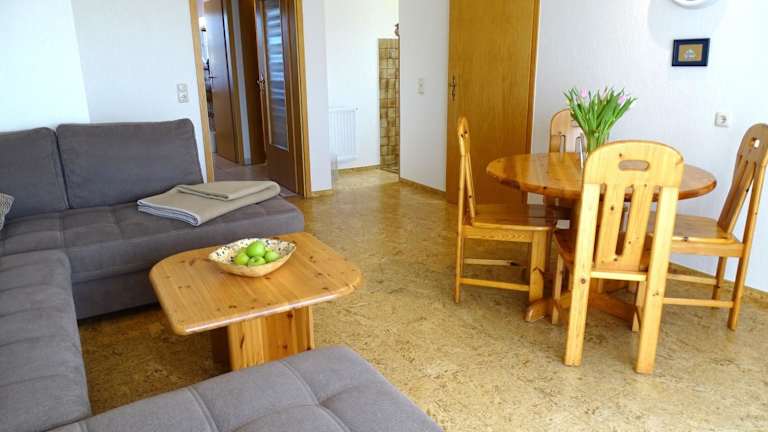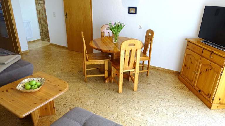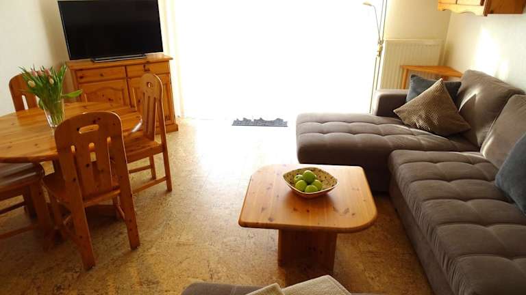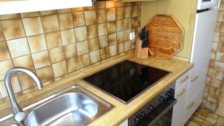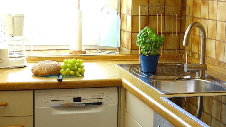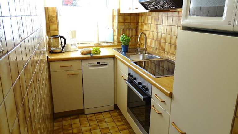 Die Ferienwohnung umfasst eine Küchenzeile mit einem Kühlschrank und einem Geschirrspüler, was Ihnen eine Selbstversorgung ermöglicht.