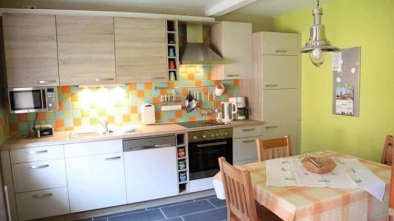 Die Ferienwohnung umfasst 3 Schlafzimmer, ein Wohnzimmer mit einem Flachbild-TV, eine gut ausgestattete Küche mit Kühlschrank und Geschirrspüler sowie 1 Badezimmer mit Badewanne oder Dusche. Handtücher und Bettwäsche werden bereitgestellt. Eine Terrasse mit Gartenblick rundet das Angebot ab.