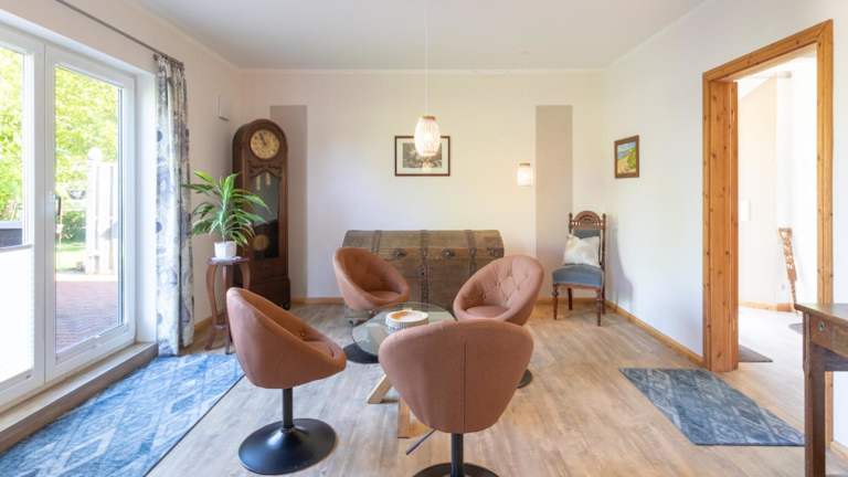 Die Ferienwohnung im Ferienhof Wisch verfügt über 3 Schlafzimmer, ein Badezimmer und eine voll ausgestattete Küche. Zu den Annehmlichkeiten gehören Bettwäsche, Handtücher und ein TV mit Satellitenkanälen. Des Weiteren ist eine Terrasse mit Gartenblick vorhanden.