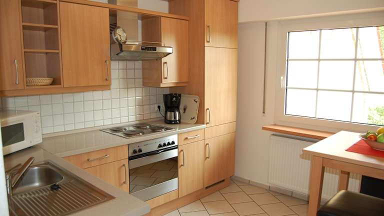 Die Unterkunft verfügt über eine Küchenzeile, in der verschiedene Geräte zur Verfügung stehen. Zusätzlich ist ein Kinderspielplatz in der Anlage vorhanden, und der Garten lädt zur Entspannung ein.