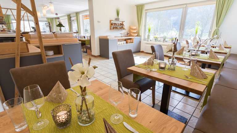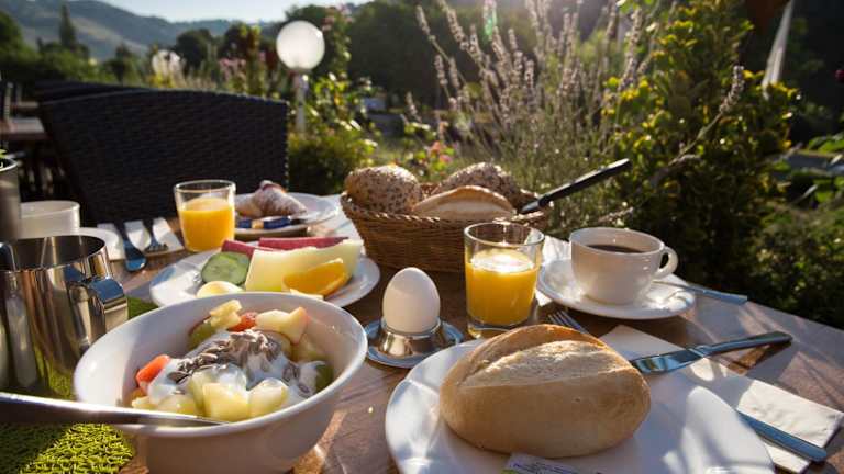 Beginnen Sie Ihren Tag mit einem reichhaltigen Frühstücksbuffet im Hotel Restaurant Sonnenlay. Bei schönem Wetter haben Sie die Möglichkeit, auf der Terrasse mit Blick auf den Fluss zu frühstücken und die idyllische Atmosphäre zu genießen. In Gehweite des Hotels finden Sie auch verschiedene Restaurants, in denen Sie regionale Spezialitäten probieren können.
