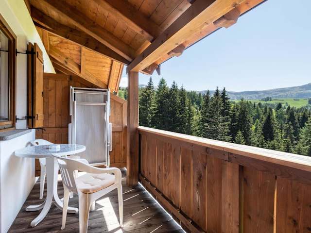 Die Ferienwohnung bietet eine umfassende Ausstattung, darunter ein Schlafzimmer, ein Wohnzimmer und eine gut ausgestattete Küche. Ein Balkon mit Bergblick ist ebenfalls vorhanden. Das Badezimmer ist mit einer Dusche und einer Badewanne ausgestattet. Handtücher und Bettwäsche werden zur Verfügung gestellt.