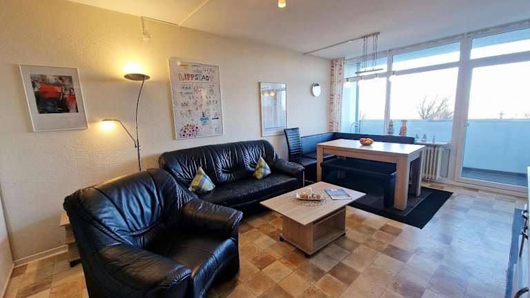 Die Unterkunft liegt etwa 600 m vom Strand in Heiligenhafen entfernt, in der Nähe des Wasservogelreservats Wallnau (33 km) und des Fehmarnsunds (15 km). Der Flughafen Lübeck befindet sich 78 km entfernt.