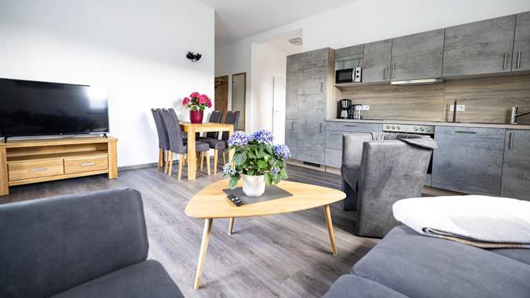 Die Unterkunft verfügt über eine Ferienwohnung mit zwei Schlafzimmern und einem Badezimmer. Zur Ausstattung gehören Bettwäsche, Handtücher, ein Flachbild-TV mit Satellitenkanälen sowie eine voll ausgestattete Küchenzeile. Eine Terrasse mit Blick auf den Garten ergänzt das Angebot.
